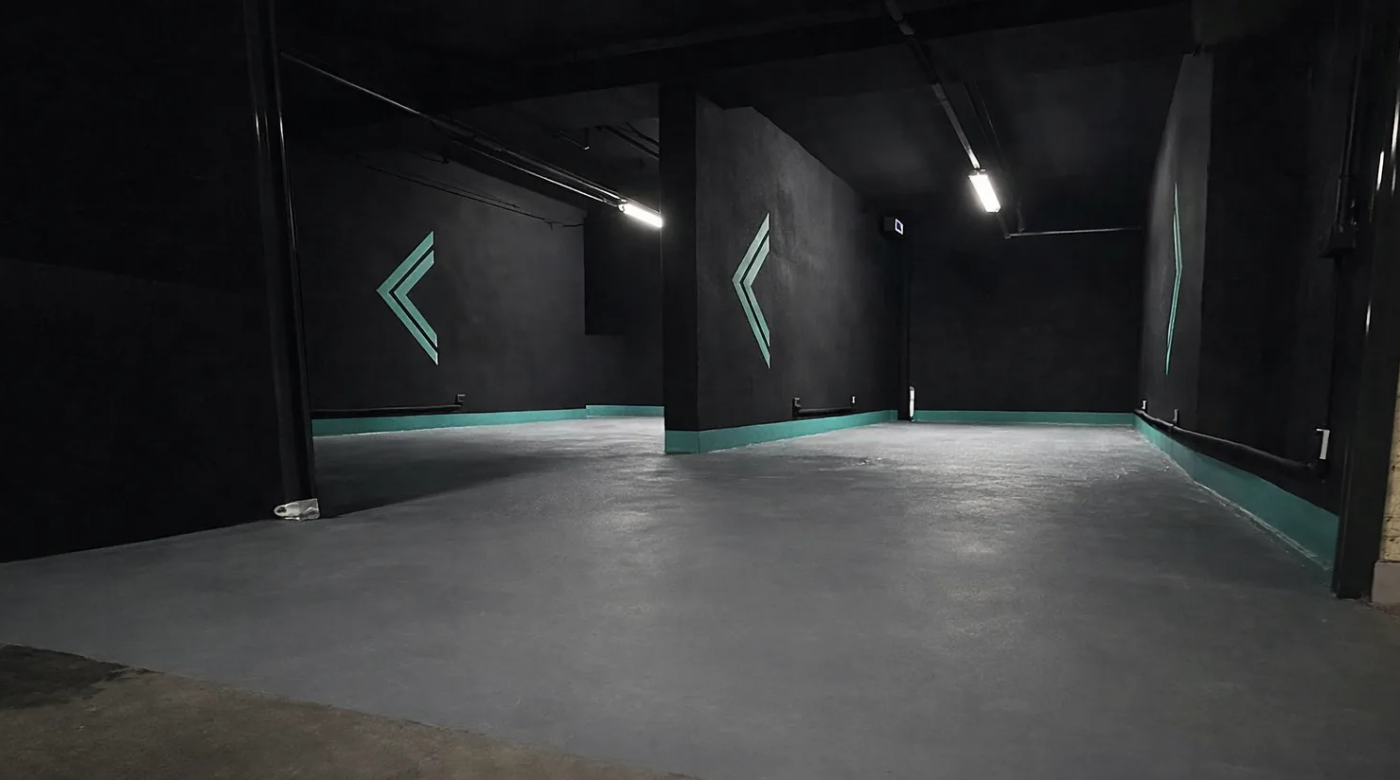 Автосервис в районе Сокольники — помещения под детейлинг автомобилей. Несколько зон разного назначения. Задача не просто покрасить — реализовать дизайн-проект с навигационными стрелками, цветовым зонированием и покрытиями под интенсивную эксплуатацию.