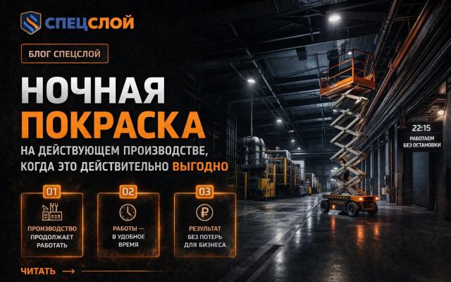 Блог СПЕЦСЛОЙ Ночная покраска на действующем производстве: когда это действительно выгодно Время чтения: ~14 минут Ночная…